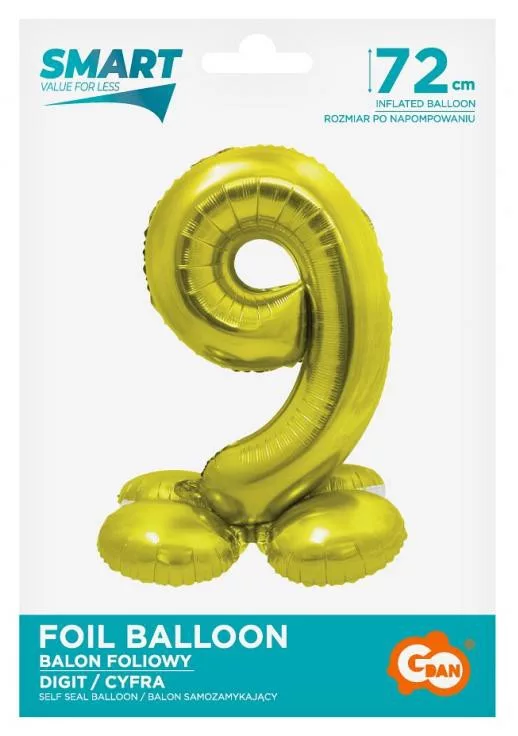Nummer Gold Goldene Nummer 9 Folienballon mit Fuß 72 cm