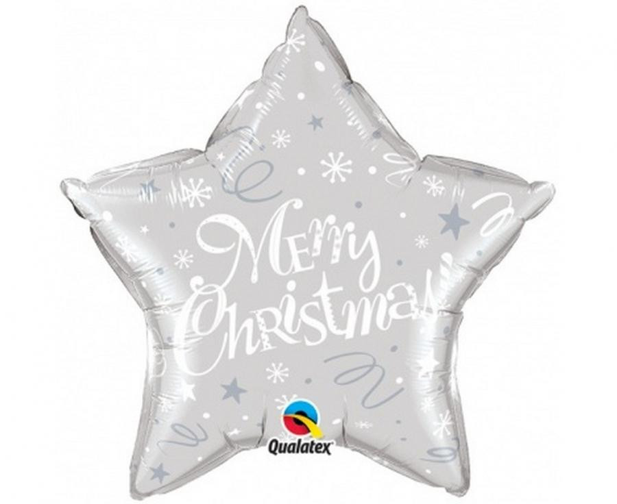 Christmas, Weihnachten Merry Silver Star, Folienballon