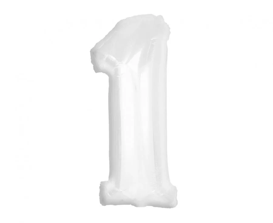 Number, Nummer Weiße 1 Folienballon 92 cm