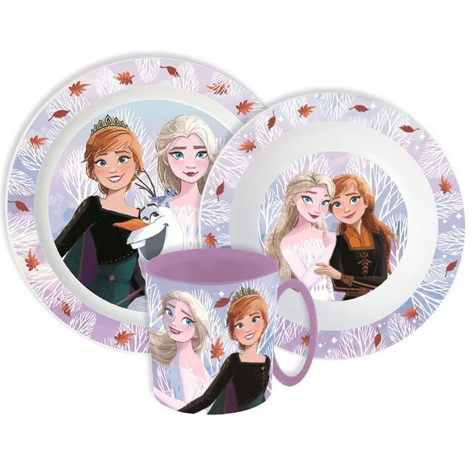Disney Frozen, Disney Eiskönigin Geschirrset, Mikro-Kunststoff-Set mit Becher 390 ml
