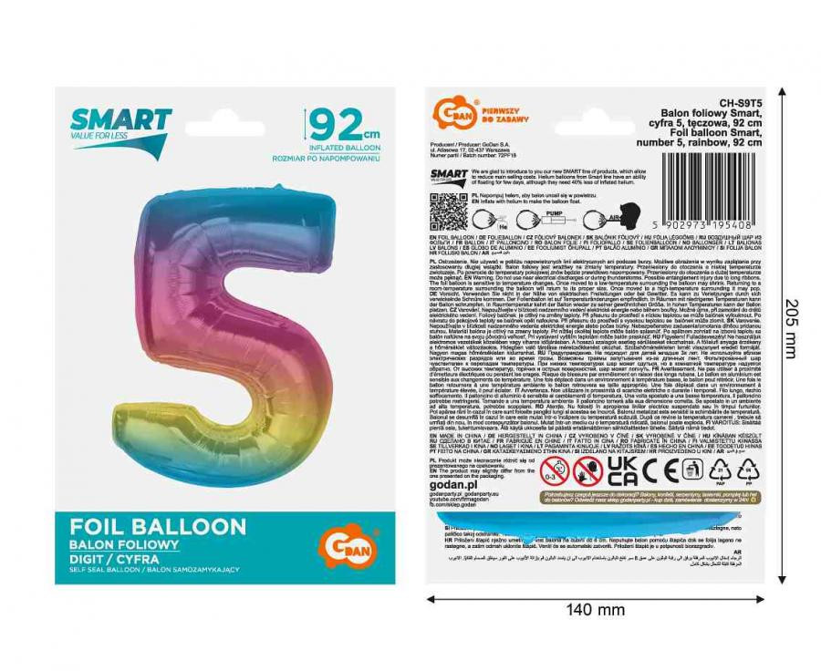 Nummer Rainbow Bunte Nummer 5 Folienballon 92 cm Nummer Rainbow Bunte Nummer 5 Folienballon 92 cm