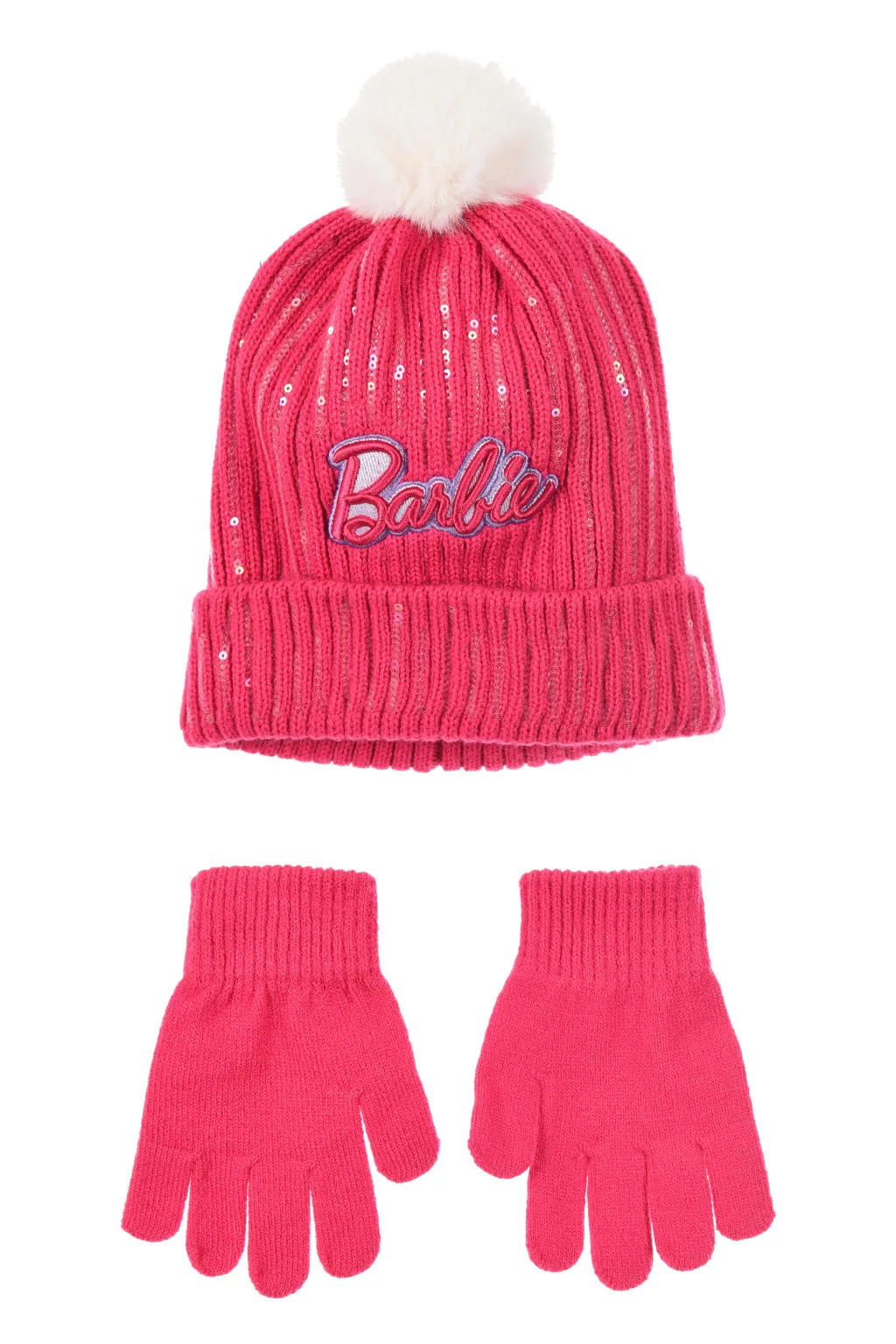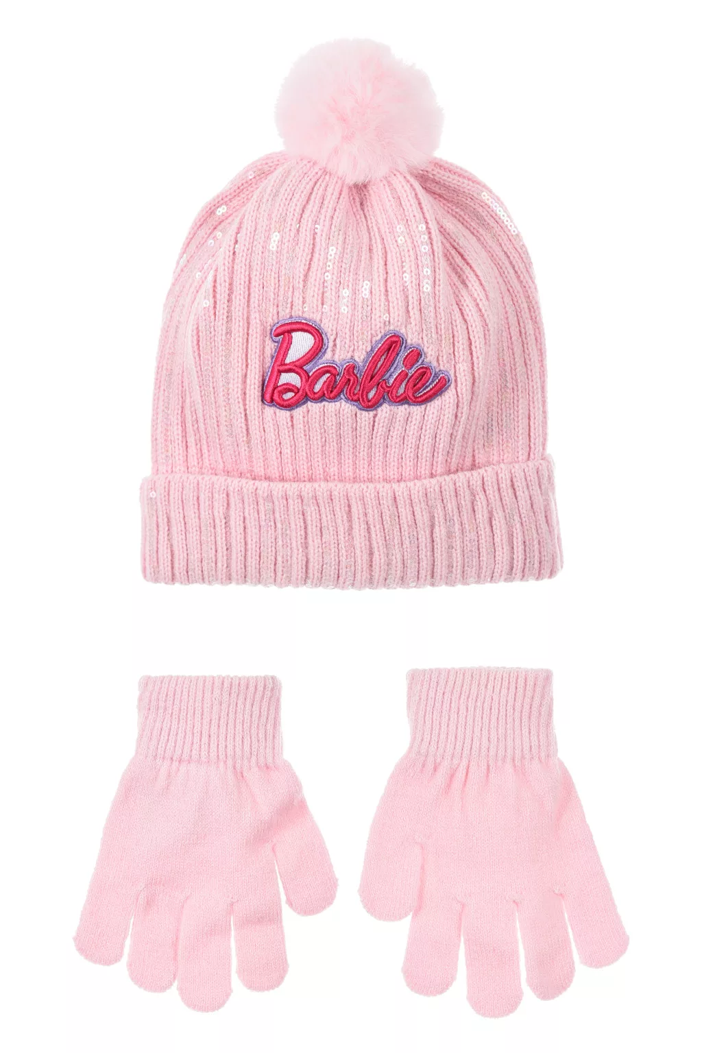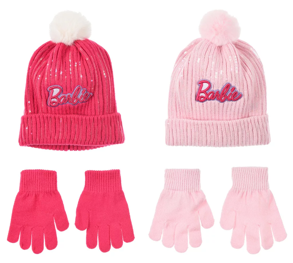 Barbie Pink Paillettenkinderhut + Handschuh-Set 52-54 cm